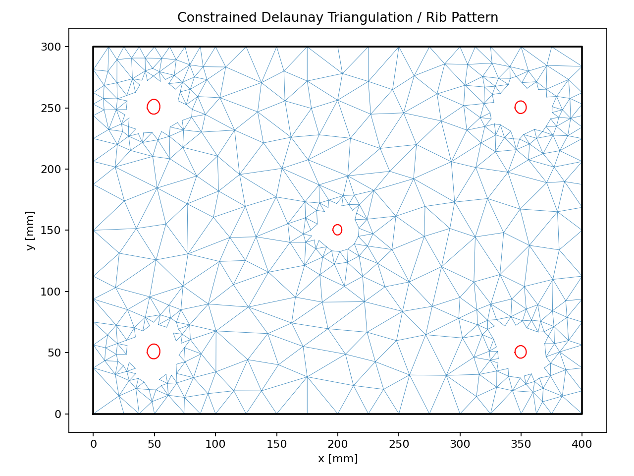 Adaptive isogrid: min triangle area filtering and circular hole bosses